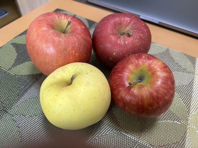 旬のりんごとば詰め合わせさしたよ。1箱で2種類のりんごば食えで嬉しいな。